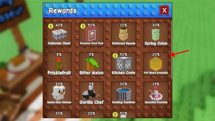 Người chơi phải sử dụng cây trồng đã đột biến để nấu món ăn, như vậy món ăn mới kế thừa được đột biến của cây. Sau đó, đem món ăn đã đột biến cho NPC Rat Connoisseur và chờ màn hình chọn phần thưởng. Nếu may mắn, mọi người sẽ nhận được Pet Shard Aromatic (độ hiếm Divine).