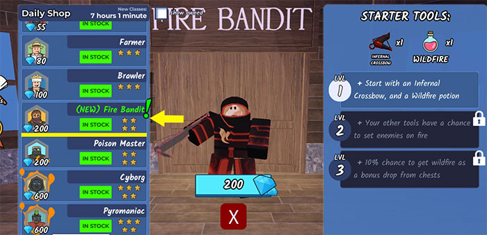 Mọi người có thể mua Fire Bandit trong Daily Shop, nằm ở góc trên bên trái màn hình. Giá của Fire Bandit là 100 và nhân vật này luôn có sẵn mỗi ngày. Nếu không thấy hiển thị, hãy chú ý đến bộ đếm thời gian trong cửa hàng.
