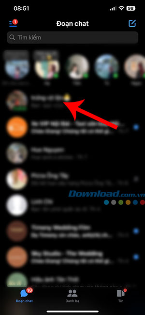 Bước 1: Mở ứng dụng Facebook Messenger, sau đó chọn một cuộc trò chuyện bất kỳ.