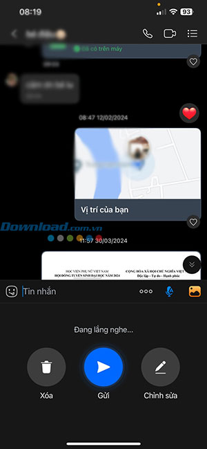 Bước 4: Sau khi hoàn tất ghi âm, người dùng có thể chọn chỉnh sửa để sửa lại nội dung tin nhắn văn bản. Khi nội dung tin nhắn đã chính xác, nhấn biểu tượng gửi để gửi tin nhắn.