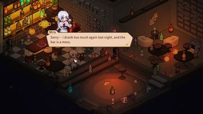 Bên trong quán, người chơi sẽ cần nhặt rác, xếp lại các chai rượu và lắp đặt các nhạc cụ. Khi hoàn tất, mọi người có thể bắt đầu pha cocktail. Trên quầy bar có một bình lắc cocktail và một bộ bài tarot. Để pha mỗi loại cocktail, hãy làm theo các bước sau: