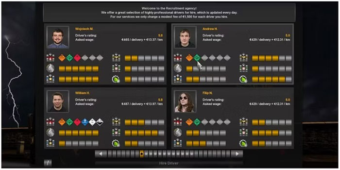 Điểm thứ hai là có đủ xe tải để tạo điều kiện cho một tài xế phụ (ngoài chính người chơi). Thuê một người lái xe sẽ là đi kiện tiên quyết cuối cùng và nó có thể được thực hiện thông qua các cơ quan việc làm nằm rải rác trên bản đồ.