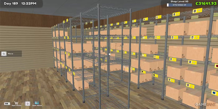 Cửa hàng sẽ liên tục thay đổi. Khi mở khóa các sản phẩm mới, người chơi sẽ muốn di chuyển hàng tồn kho thường xuyên để mọi thứ trông gọn gàng và ngăn nắp. Sử dụng tay để di chuyển các mặt hàng từ kệ này sang kệ khác là một công việc tốn thời gian.