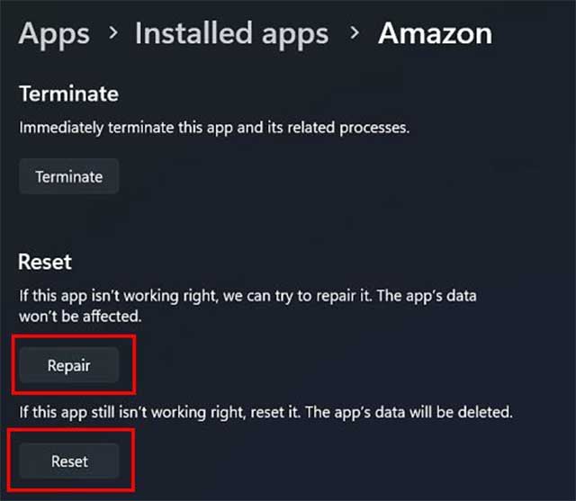 Nếu bạn không chắc mình có nên đặt lại ứng dụng hay không, bạn có thể nhấn vào tùy chọn Repair. Nếu cách đó không hiệu quả, bạn luôn có thể thử nút Reset.