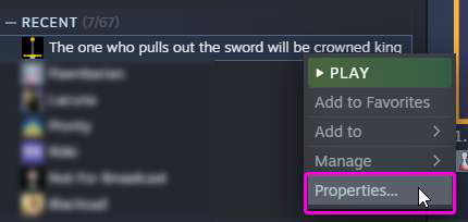 Bước 1: Kích hoạt đầu vào Steam bằng cách mở Library của Steam, nhấp chuột phải vào trò chơi và chọn Properties.