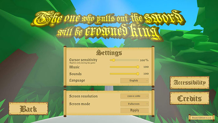 The one who pulls out the sword will be crowned king là một tựa game giả lập rút kiếm mới miễn phí trên Steam. Game có lối chơi rất đơn giản, yêu cầu người chơi sử dụng chuột và kéo thanh kiếm ra khỏi tảng đá, thành công rút thanh kiếm thì sẽ được kết hôn với công chúa và trở thành nhà vua.