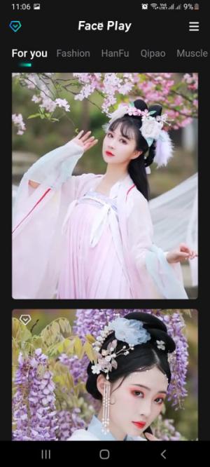 FacePlay cho phép bạn ghép khuôn mặt mình vào video cực kỳ chân thực, từ đó, người dùng có thể cosplay bất cứ nhân vật nào mình thích, từ các nhân vật cổ trang Trung Hoa hay cô nàng sành điệu, anh chàng cơ bắp…