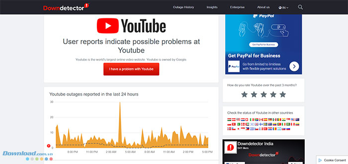 Mọi người có thể vào Downdetector và tìm kiếm trên YouTube. Nếu nhận thấy mức độ phản ứng cao đối với YouTube thì đó là vấn đề từ phía YouTube.