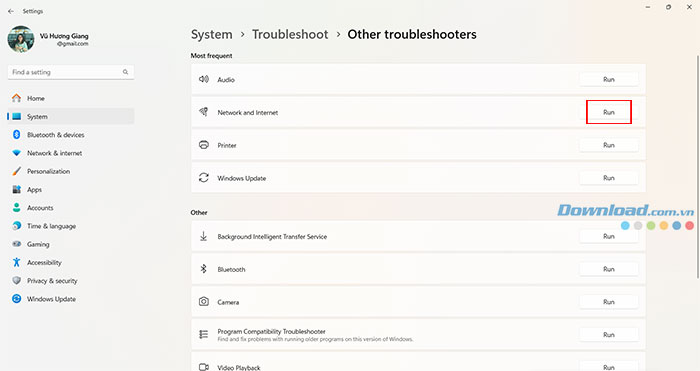 Windows 11 có các công cụ tích hợp giúp khắc phục sự cố mạng thông thường. Network and Internet Troubleshooter sẽ quét hệ thống và tự động sửa lỗi nếu tìm thấy: