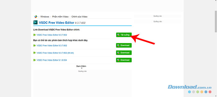 Bước 1: Truy cập trang tải VSDC Free Video Editor và nhấn nút Tải về.