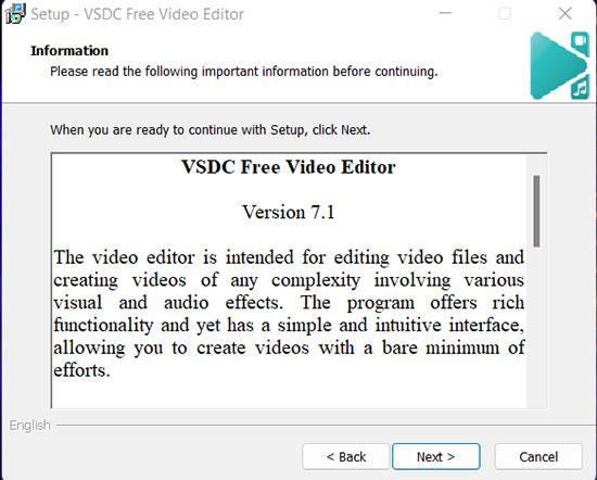 Bước 5: Nhấn Next trong cửa sổ giới thiệu thông tin về VSDC Free Video Editor.