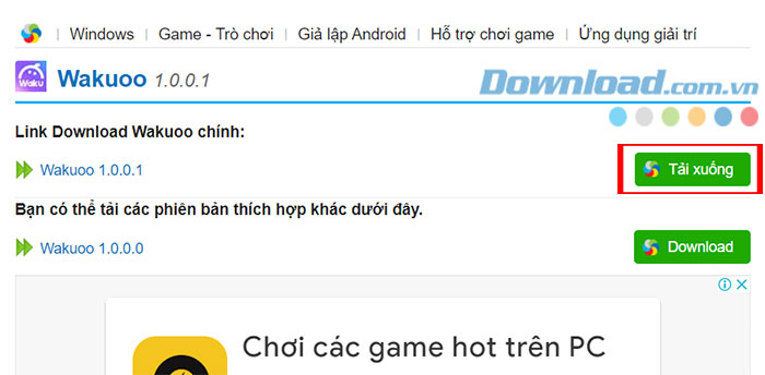 Bước 1: Nhấn vào nút Tải về Wakuoo ở phía dưới đây.