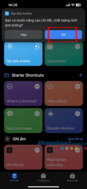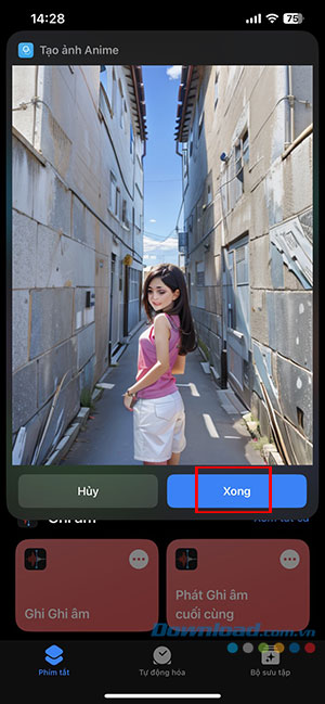 Mở trang Phím tắt Tạo ảnh Anime > nhấn Nhận Phím tắt để tải xuống > ấn nút Thêm phím tắt > chạm vào phím tắt Tạo ảnh Anime > chọn hình ảnh muốn chuyển sang ảnh AI > nhấn Cho phép để cấp quyền > chạm vào Xong để lưu ảnh.