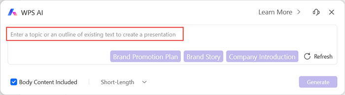 WPS AI Slides được tích hợp trong WPS Office, sở hữu bộ sưu tập template đa dạng và giao diện quen thuộc giống Microsoft, giúp người dùng dễ dàng thao tác. Trong khi tính năng Copilot của Microsoft vẫn chưa ra mắt thì WPS AI Slides đã mang đến trải nghiệm tuyệt vời của PPT tích hợp AI. Chỉ cần nhập một prompt đơn giản, AI sẽ tự động tạo dàn ý và nội dung, giúp người dùng có hàng chục slide chỉ trong vài giây.