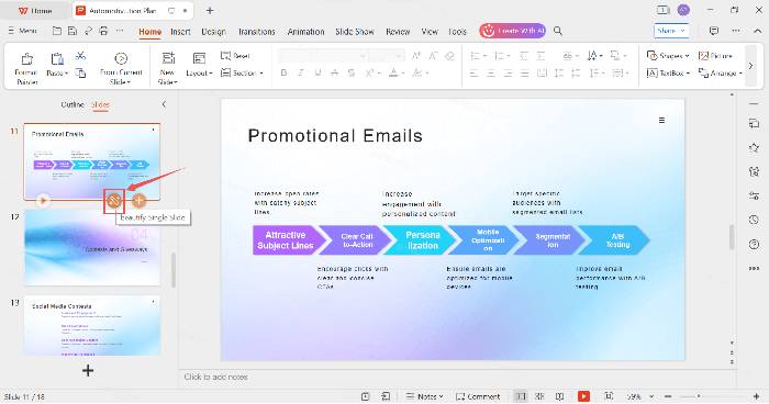 Tính năng Beautify Single Slide của WPS AI Slides thực sự rất ấn tượng: chỉ một cú nhấp chuột, AI sẽ tinh chỉnh bố cục slide một cách thông minh và cực kỳ mượt mà. Nhiều công cụ AI khác cũng có tính năng này, nhưng WPS AI làm mọi thứ đơn giản và hiệu quả hơn nhiều, giúp người dùng nhanh chóng hoàn thiện slide và tiếp tục công việc khác.
