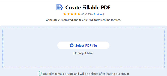 Bước 1: Mở trình duyệt và truy cập PDFgear online fillable PDF maker. Nhấn Select PDF File để mở tệp PDF.