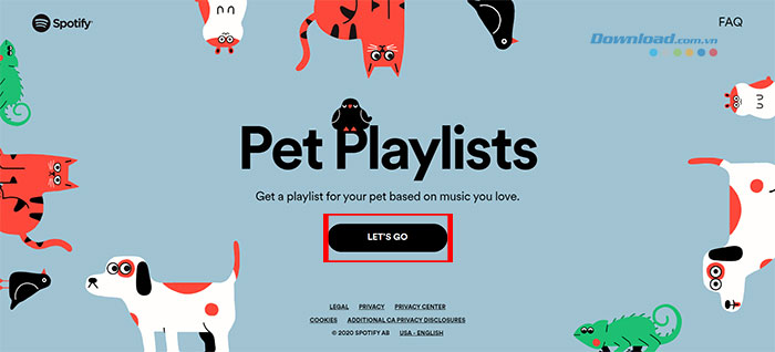 Bước 1: Mở trang Spotify for Pets trên bất kỳ trình duyệt web nào. Tại đây, nhấp vào Let's Go.