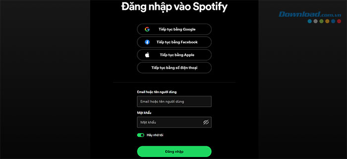 Bước 2: Đăng nhập vào tài khoản Spotify của mình (không yêu cầu tài khoản Spotify Premium)
