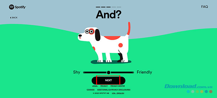 Bước 4: Di chuyển thanh trượt để hiển thị mức độ nhút nhát (Shy) hoặc thân thiện (Friendly) của thú cưng và nhấp vào Next.