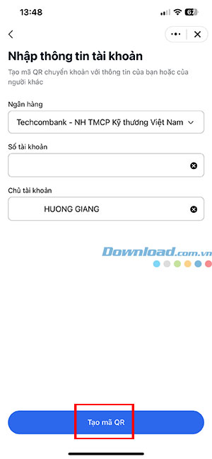 Bước 4: Khi đã kiểm tra thông tin mình nhập là chính xác, ấn nút Tạo mã QR.