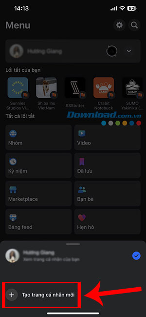 Bước 5: Cuối cùng, chạm vào Tạo trang cá nhân và một hồ sơ mới sẽ được tạo, liên kết trực tiếp với tài khoản Facebook chính của bạn.