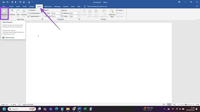 Bước 1: Vẫn trong tab Layout, chọn Margins.