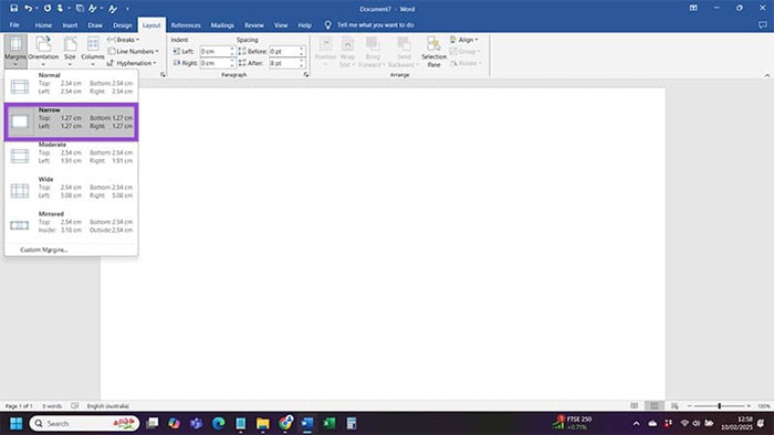 Bước 2: Chọn Narrow và người dùng có thể tận dụng gần như toàn bộ không gian trên trang giấy.