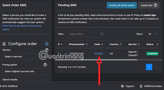Bước 5: Sau đó quay lại trang SMSPool để lấy mã OTP (gồm 6 chữ số) được gửi về số điện thoại đã mua. Nhập OTP để xác minh và hoàn tất việc tạo tài khoản ChatGPT.