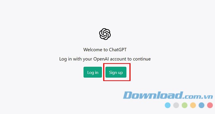 Bước 5: Sử dụng phần mềm VPN để chuyển IP sang USA và truy cập trang web https://chat.openai.com/auth/login. Nhấn Sign Up, sau đó điền email và mật khẩu để tạo tài khoản.
