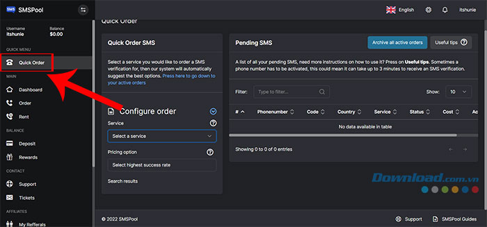 Bước 4: Sau khi nạp tiền thành công, nhấn vào tab Quick Order.