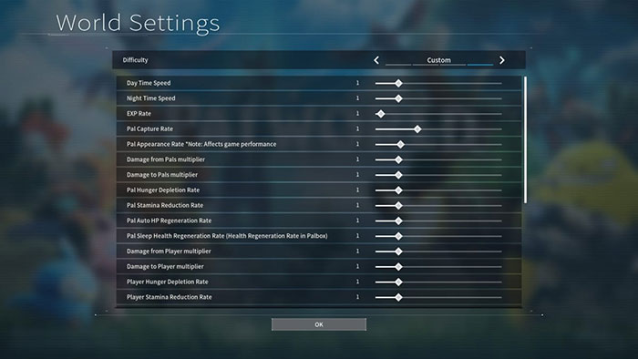 - Pal Appearance Rate: Nếu có một chiếc PC mạnh mẽ, hãy tăng cường điều này để lấp đầy thế giới với Pal.