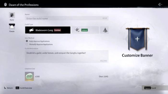 Nếu không hài lòng với các bang có sẵn và muốn tạo guild riêng, hãy làm theo các bước sau: