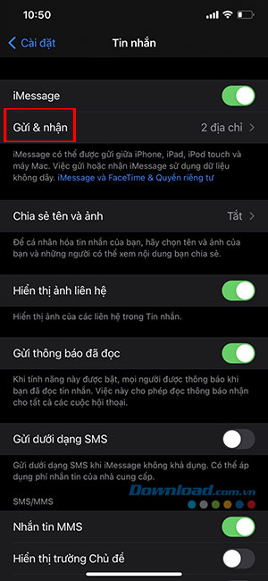 Bước 4: iMessage sẽ hiển thị Apple ID mới ở phía dưới. Đảm bảo chọn Apple ID mới từ menu Bạn có thể nhận iMessage đến và trả lời từ. Từ bây giờ, bất kỳ ai cũng có thể liên hệ thông qua Apple ID mới trong iMessage.