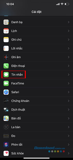 Bước 2: Kéo xuống phần Tin nhắn.