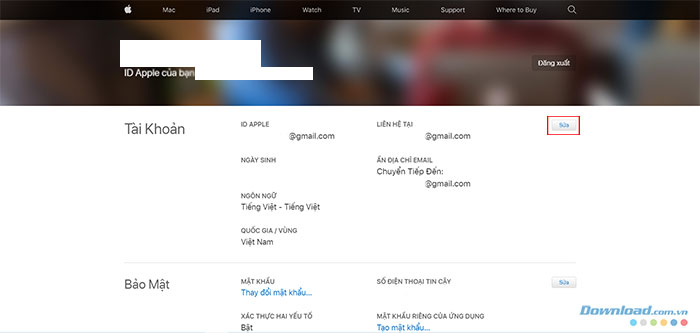 Hiện nay mọi người không thể thay đổi email ID Apple trực tiếp trên iPhone, iPad mà chỉ thực hiện điều này trên trang web.