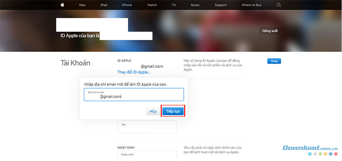Bước 6: Nhập địa chỉ email mới muốn sử dụng làm Apple ID, sau đó chọn Continue và mọi người đã có thể sử dụng email mới cho Apple ID của mình.