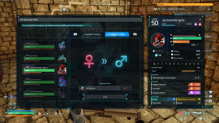 Ngoài ra, người chơi cũng có thể đổi giới tính của những Pal sở hữu chỉ số mạnh hoặc kỹ năng thụ động hiếm, giúp chúng có thể lai với những Pal mạnh khác. Điều này sẽ giúp di truyền các gene quý giá sang thế hệ Pal mới ngày càng nhiều hơn.