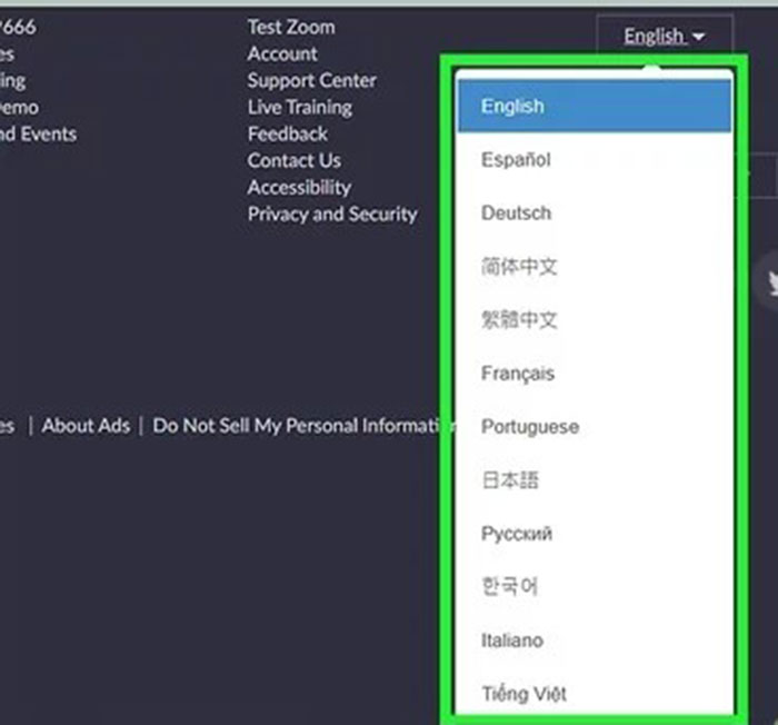 Zoom cung cấp đa dạng nhiều loại ngôn ngữ khác nhau cho người dùng từ khắp nơi trên thế giới. Mọi người có thể thay đổi sang các ngôn ngữ sau: