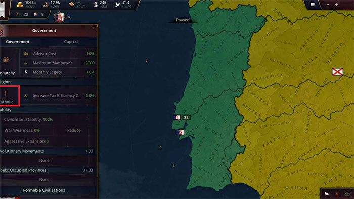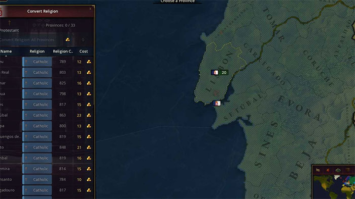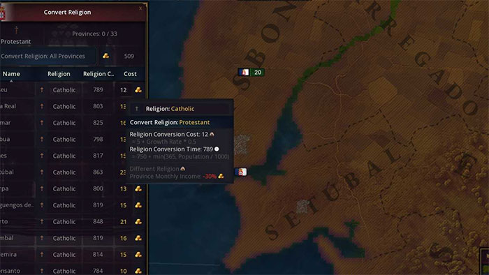 Sau khi thay đổi tôn giáo, quốc gia sẽ tiếp tục tuân theo các thông lệ trước đó và để thay đổi điều này, người chơi phải mở tab Religion, đây là tab cuối cùng trên menu bên trái. Người chơi có thể chọn nút Convert Religion: All Provinces ở trên cùng và chuyển đổi tất cả các tỉnh ngay lập tức. Tuy nhiên, game thủ cũng có thể chọn thủ công các tỉnh trên bản đồ thế giới để chuyển đổi chúng.