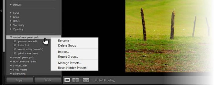 Nếu muốn loại bỏ nhóm preset, chọn nhóm đó trong danh sách. Sau đó, nhấp chuột phải và chọn Delete Group. Người dùng cũng có thể mở rộng nhóm và xóa các preset riêng lẻ trong gói đã cài đặt.