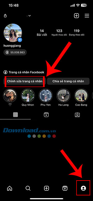 Bước 2: Nhấn vào nút Chỉnh sửa trang cá nhân nằm bên dưới phần mô tả tài khoản.