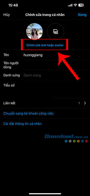 Bước 3: Trong Chỉnh sửa trang cá nhân, nó sẽ hiển thị cho mọi người tùy chọn Chỉnh sửa ảnh hoặc avatar, hãy nhấn vào tùy chọn đó.