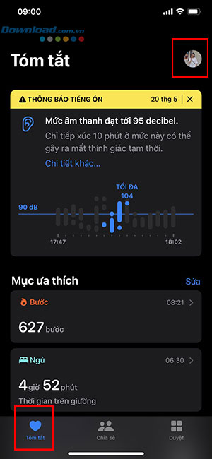 Bước 1:Mở ứng dụng Sức khỏe và chọn tab Tóm tắt.