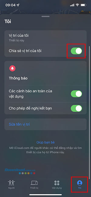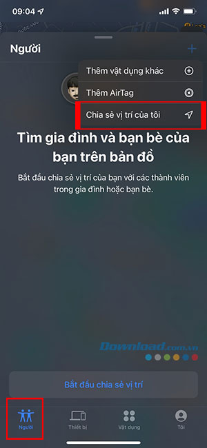 Dưới đây là cách chia sẻ vị trí của mình cho người khác trong ứng dụng Tìm: