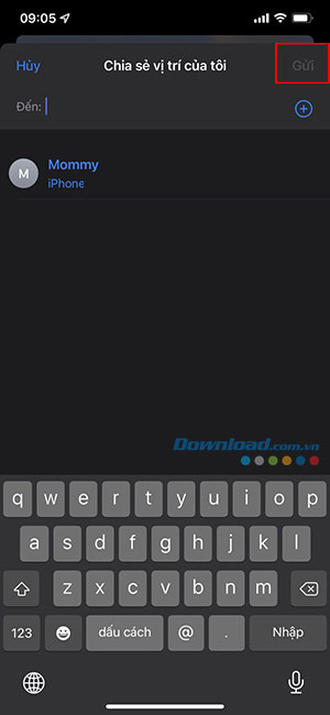 Bước 4: Chọn liên hệ mà mọi người muốn chia sẻ và nhấn Gửi để iPhone sẽ nhắc chọn khoảng thời gian chia sẻ vị trí. Sau khi người dùng xác nhận, liên hệ vừa chọn sẽ nhận được thông báo về vị trí.