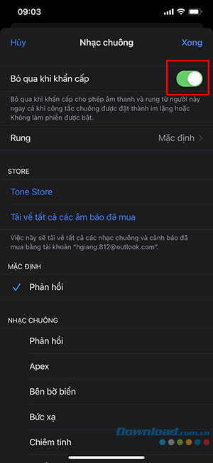 Bước 5: Sau đó, bật công tắc chuyển đổi ở Bỏ qua khẩn cấp và nhấn Xong.