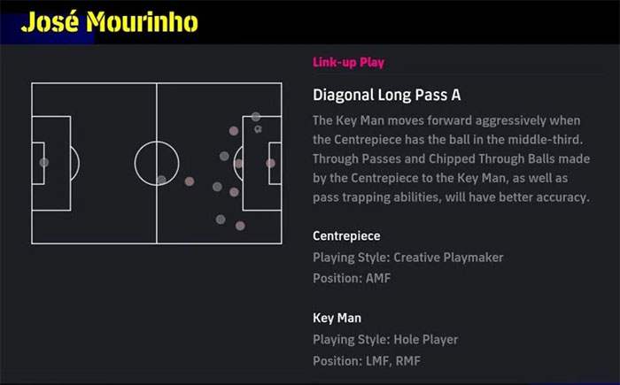 Ngoài ra, tùy theo phong cách hoặc chức năng của HLV, một số chỉ số sẽ được tăng cường. Với Jose Mourinho, khả năng chuyền bóng của Centrepiece và tốc độ di chuyển của Key Man đều sẽ được cải thiện.