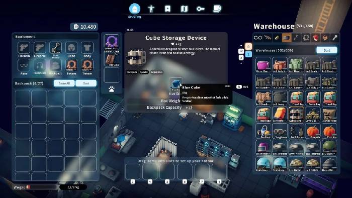 Để truy cập toàn bộ số Blue Cube mình đã thu thập, hãy mở Cube Storage Device trong kho đồ. Nhấp vào ô Blue Cube để chuyển toàn bộ số Cube đã thu thập vào kho chính hoặc thiết bị lưu trữ, sau đó dùng chúng để mua các nâng cấp vĩnh viễn trong Escape From Duckov.