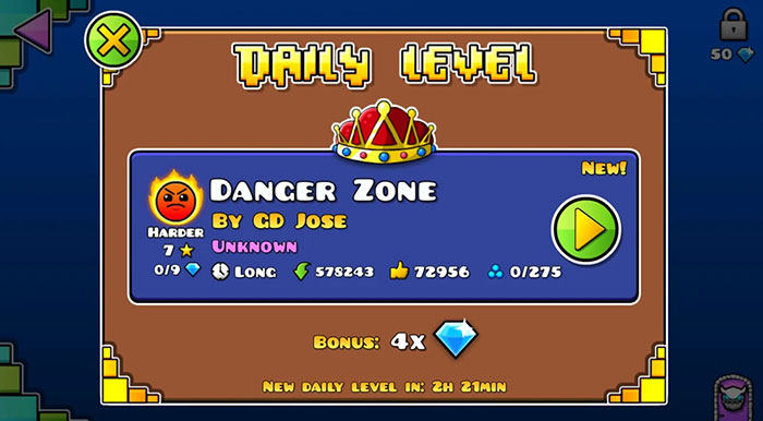 Người chơi có thể nhận kim cương trong Geometry Dash bằng cách:
