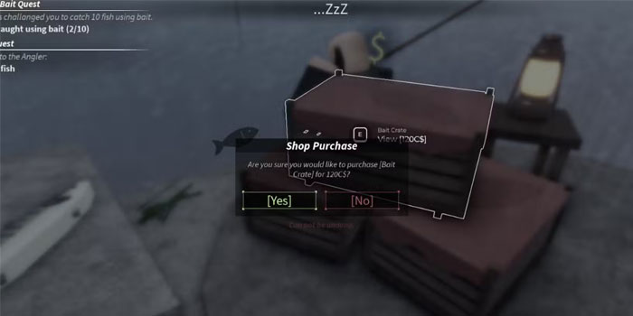 Để có được thùng mồi ở Fisch, người chơi cần phải đến hòn đảo bắt đầu, gần bến tàu sẽ tìm thấy một số thùng. Khi đến gần chúng, người chơi có thể mua một thùng mồi với giá 120 C$.